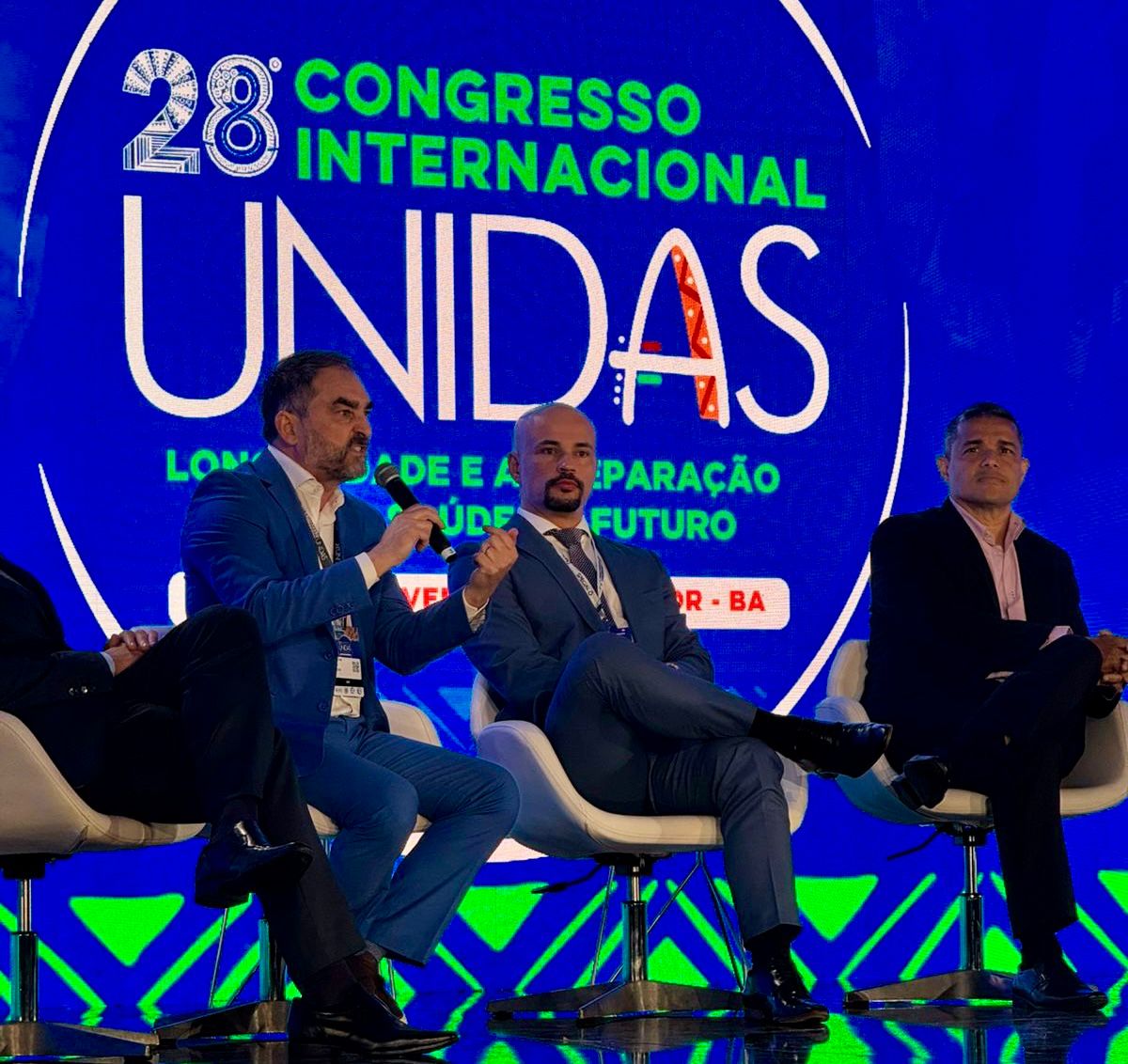 O Ipasgo Saúde participou, nesta quinta-feira (6), do segundo dia do 28º Congresso Unidas, realizado em Salvador (BA). O presidente da operadora de saúde, Bruno D’Abadia, foi um dos convidados do painel “Autogestão em Saúde: A Importância de Liderar a Transformação”, que reuniu lideranças de diferentes operadoras de autogestão para discutir caminhos para a modernização do setor.